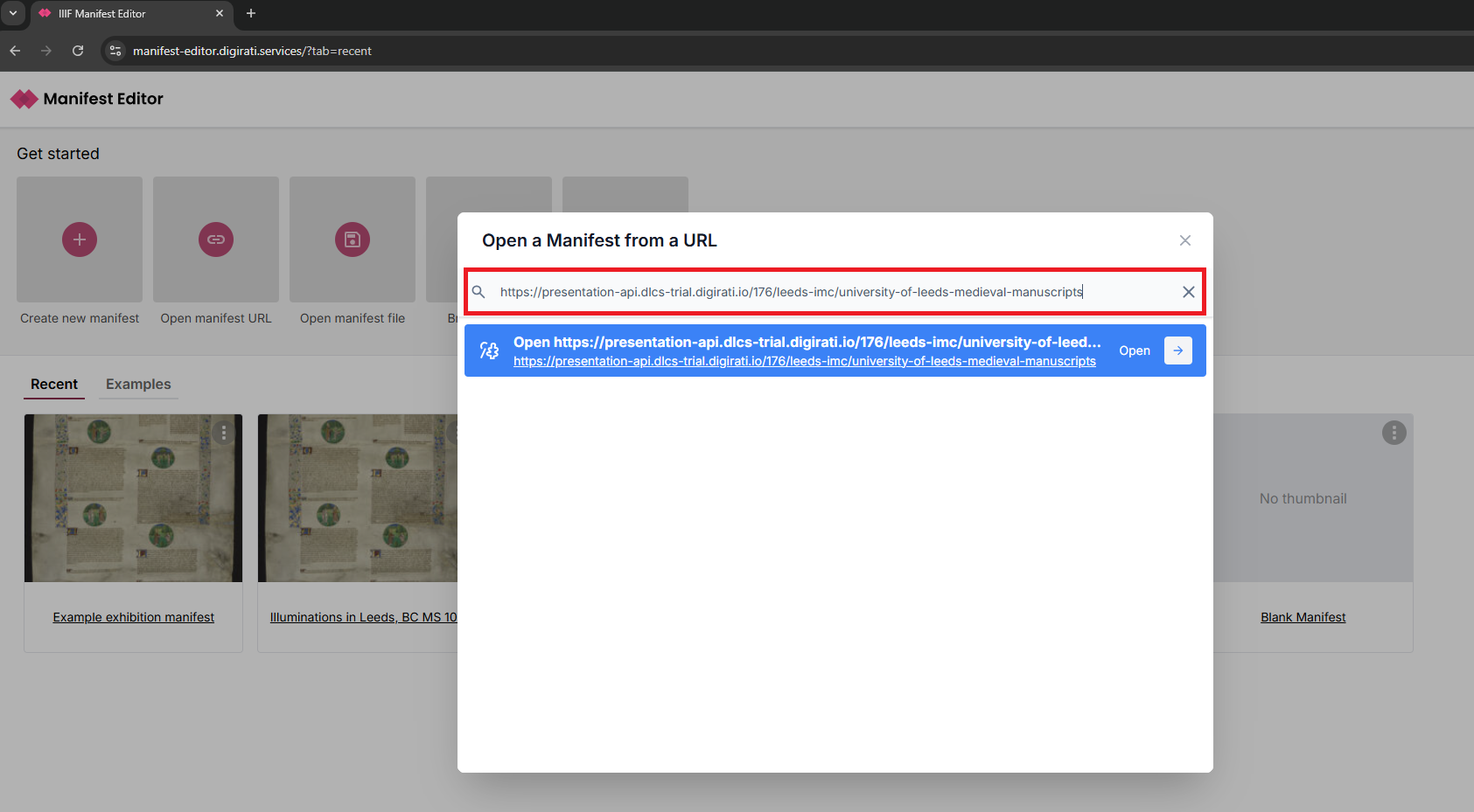 - Paste the Collection URL into the navigation bar, and click to open the IIIF content
