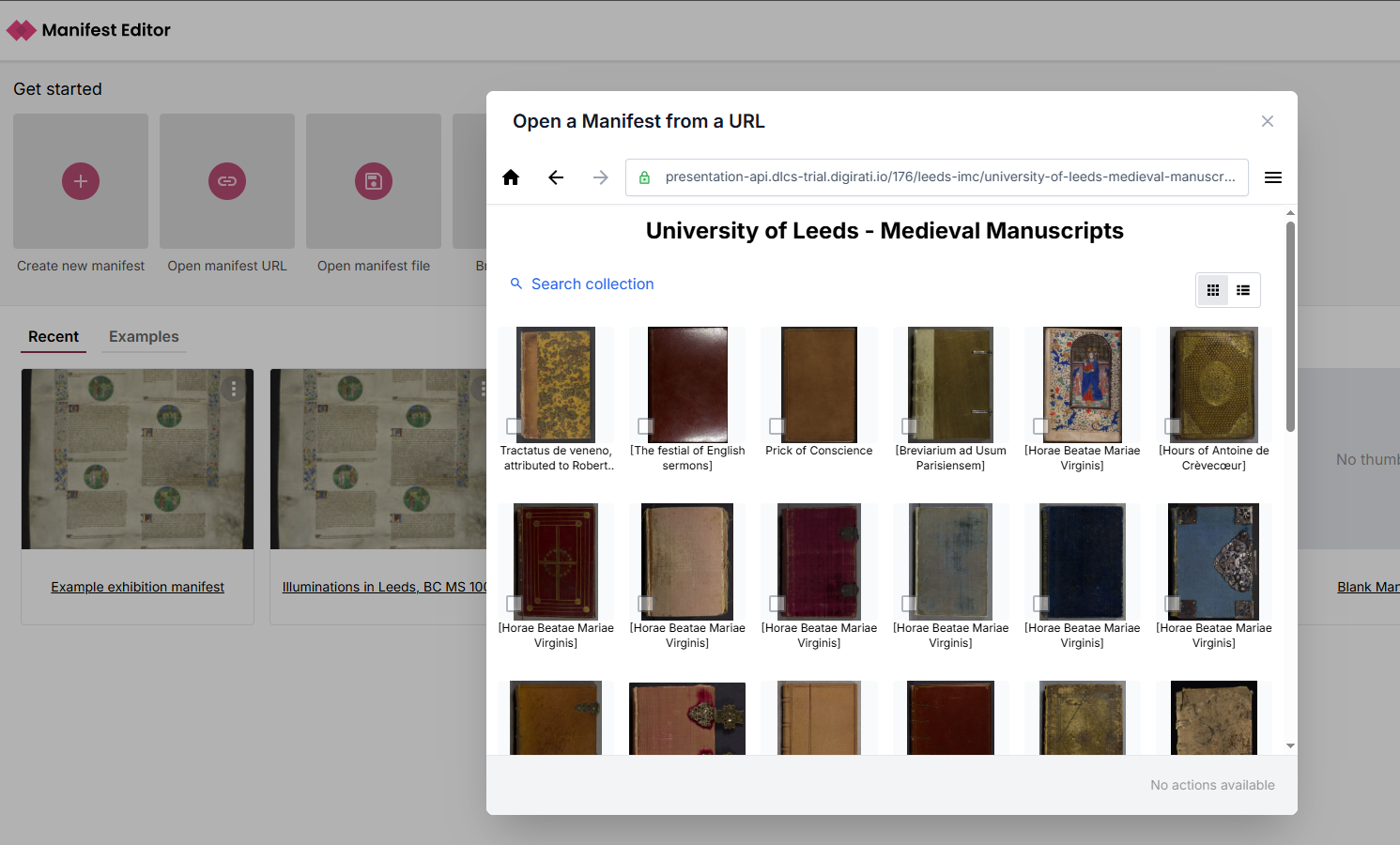Section titled “Step 1: Browse the IIIF Collection in the Manifest Editor”- Copy the Collection URL above