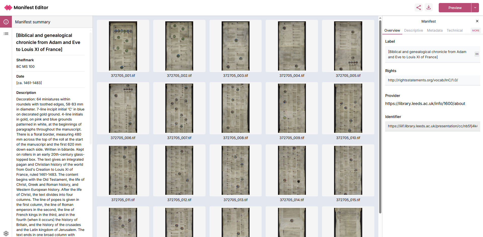 - This will open the selected Manifest in the Manifest Editor, allowing you to view the IIIF Manifest in detail
