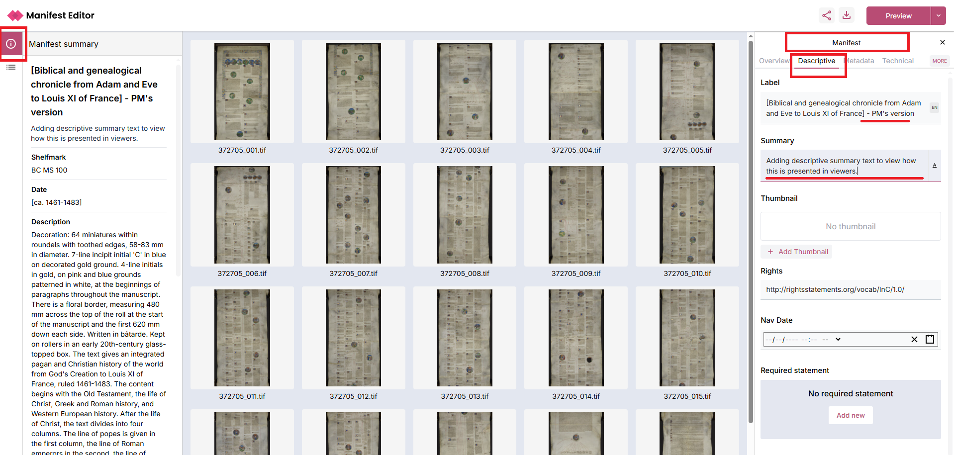 Step 3: Editing the IIIF Manifest and previewing your changes